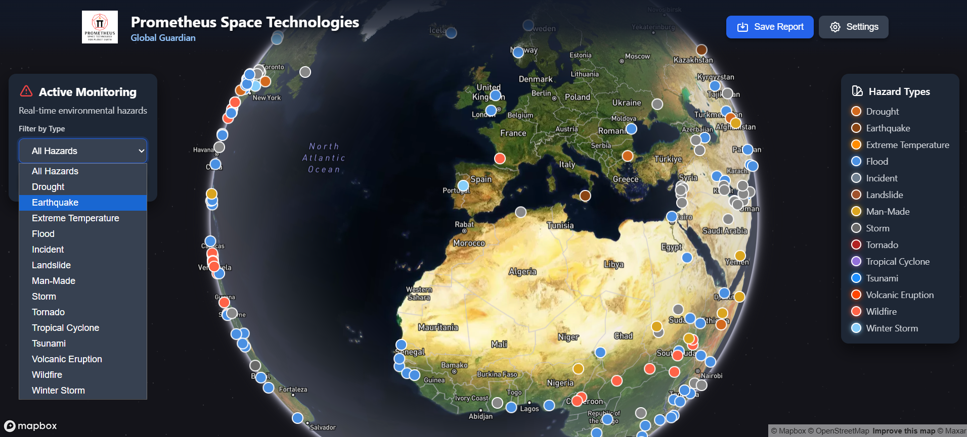 Open the Global Guardian monitor to view real-time hazards and generate reports.